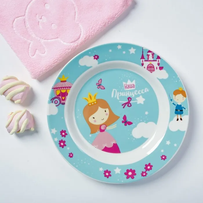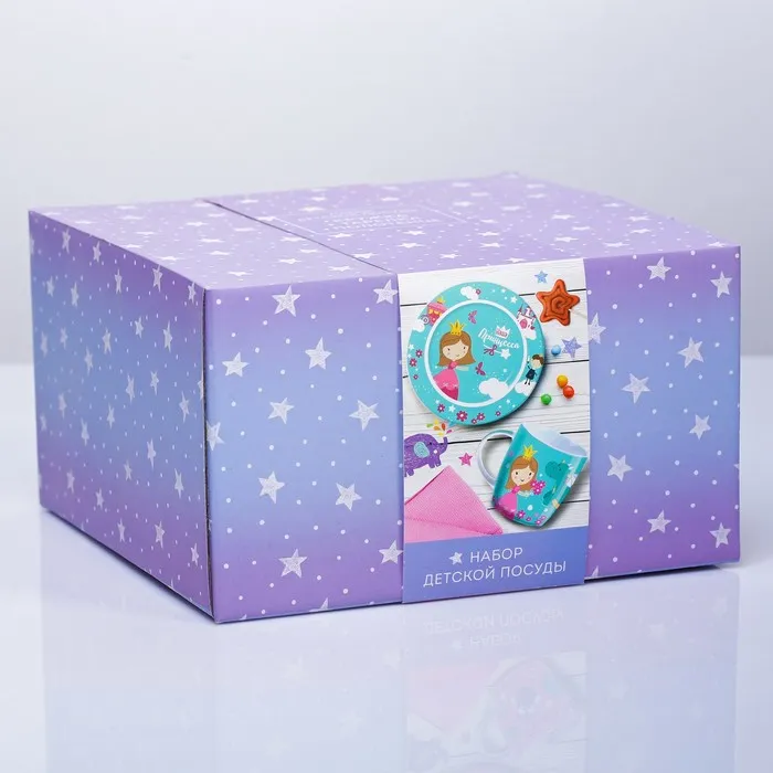 Детская посуда, набор «Принцесса»: кружка 250 мл, тарелка Ø 17 см, полотенце 15×15 см — Характеристики