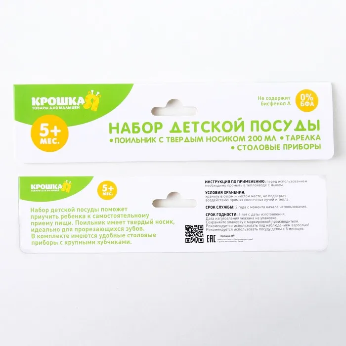 Комплект подходит для малышей, которые учатся кушать самостоятельно. Пластиковая посуда не бьётся и имеет небольшой вес. Её яркий дизайн непременно понравится крохе.
