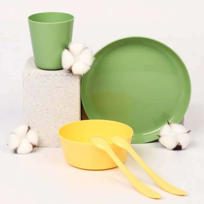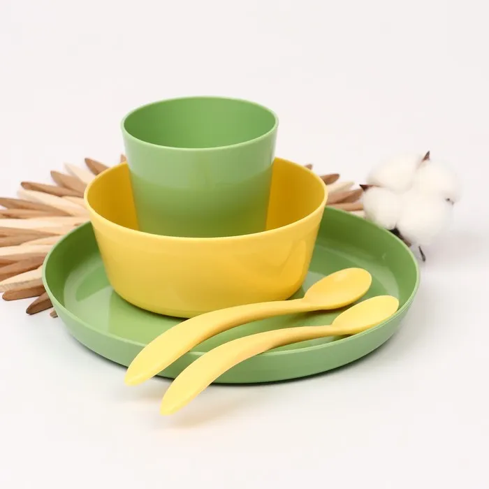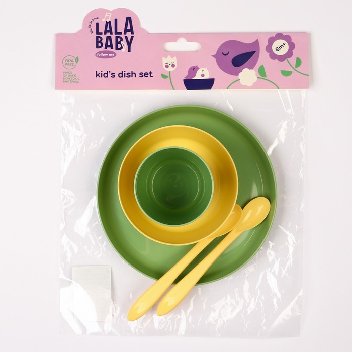 Детская посуда в наборе Lalababy Follow Me (тарелка, миска, стаканчик, 2 ложки), цвет зеленый — Характеристики