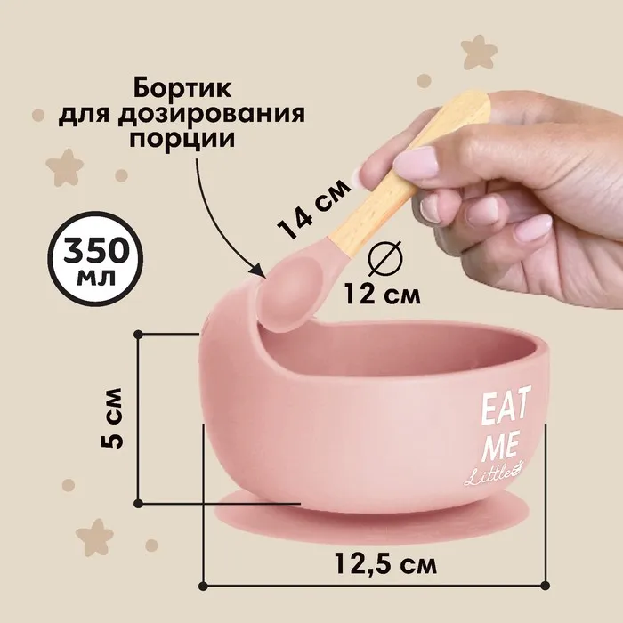 Детская посуда в наборе M&B: нагрудник, тарелка на присоске, ложка, силикон, пыльная роза — Характеристики