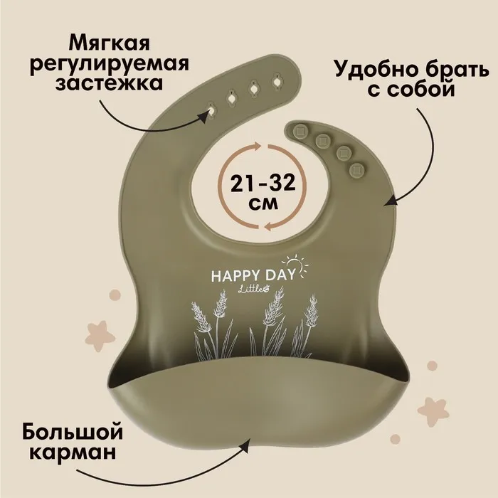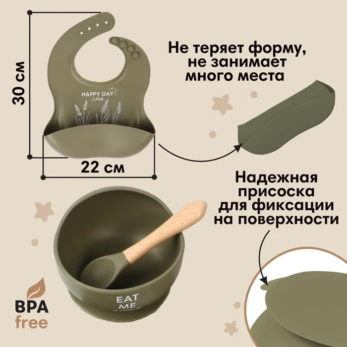 Детская посуда в наборе M&B: нагрудник, тарелка на присоске, ложка, силикон, зеленый — Характеристики