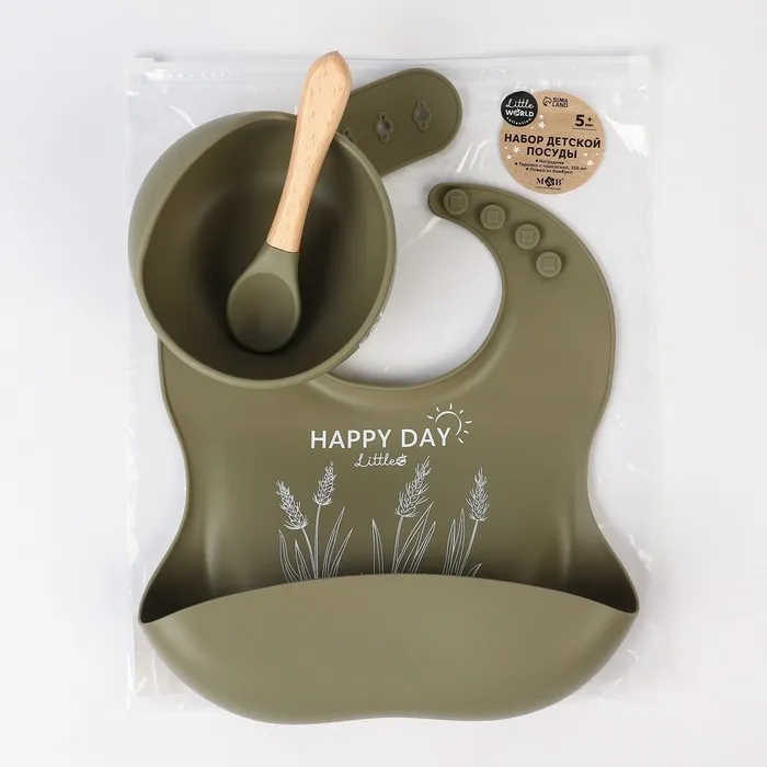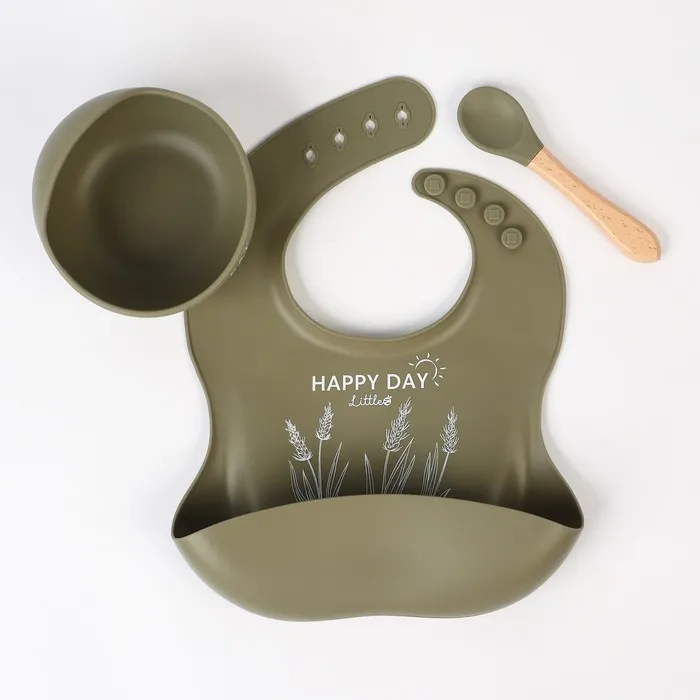 Детская посуда в наборе M&B: нагрудник, тарелка на присоске, ложка, силикон, зеленый