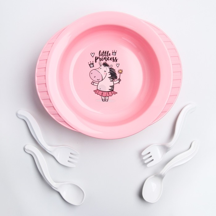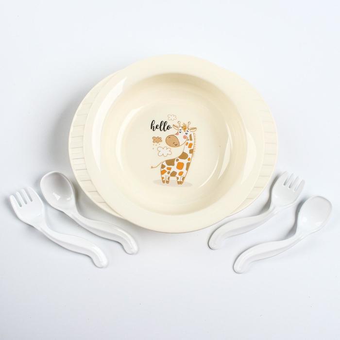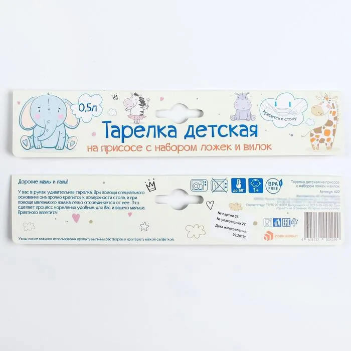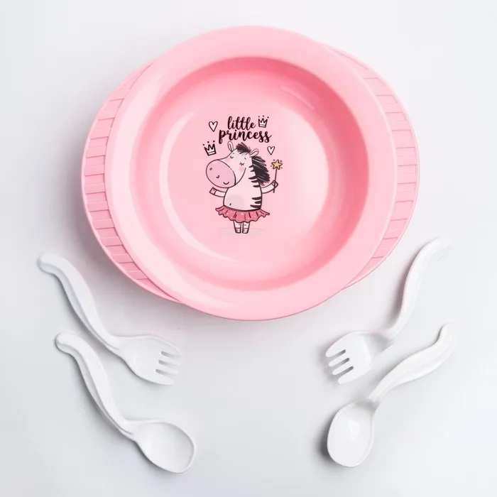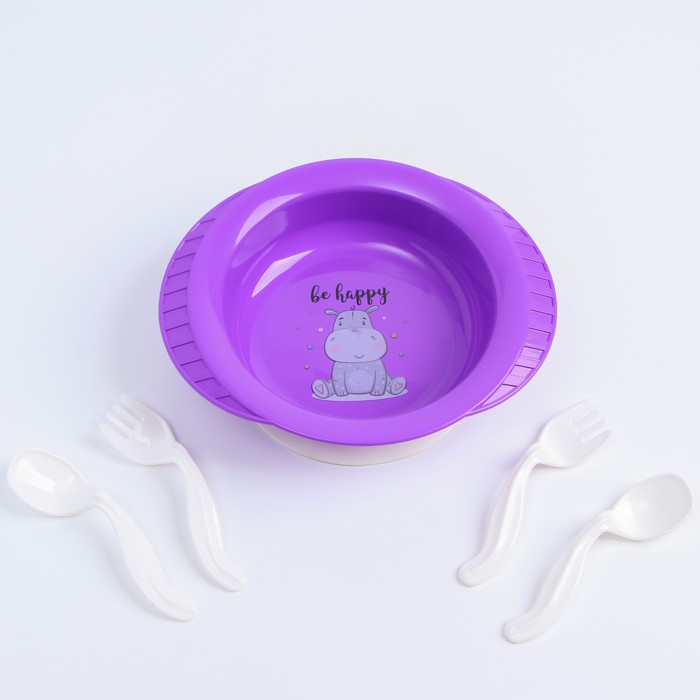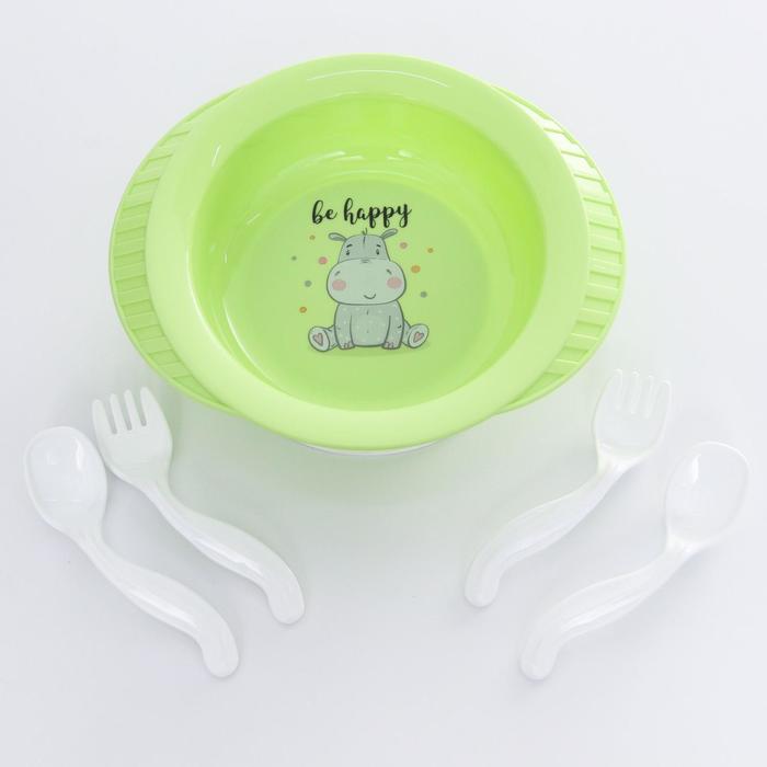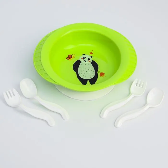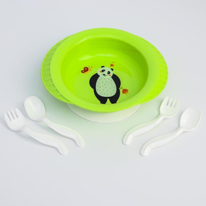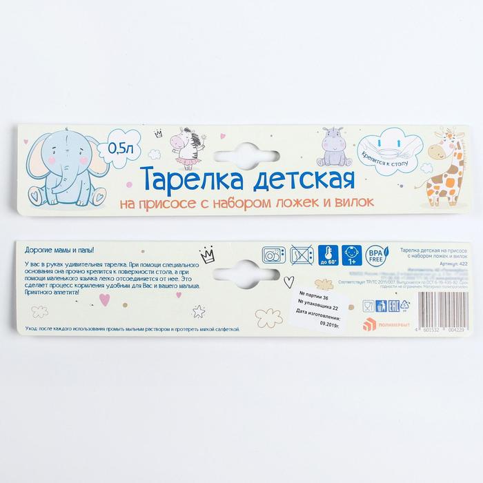 Детская посуда в наборе, тарелка на присоске, 500 мл, ложка, 2 шт., вилка, 2 шт., МИКС — Характеристики