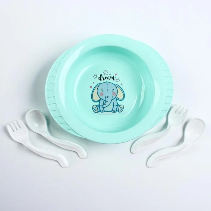 Учиться пользоваться посудой и столовыми приборами никогда не рано! Для того, чтобы познакомить Вашего ребенка с ложкой и вилкой весело и безопасно, разработана детская тарелка с набором вилок и ложек. Продукт изготовлен из качественного, прошедшего тщательную проверку, пищевого пластика, не содержащего сторонних химических примесей и запахов. Тарелка удобная и вместительная, идеально подойдет как для первых, так и для вторых блюд. По бокам она имеет специальные бортики, за которые ребенок сможет ее придерживать. Дно посуды украшает яркое красочное изображение со всеми любимыми животными. Ребенок с большим удовольствием доест еду до конца, чтобы "спасти" дорогого друга.В комплект входят имеющие оригинальную форму столовые приборы. Ложки и вилки с закругленными краями 100% безопасны для использования. Ребенку будет интересно самостоятельно кушать из такой посуды, и он с уверенностью скажет Вам: "Мама, я сам!"