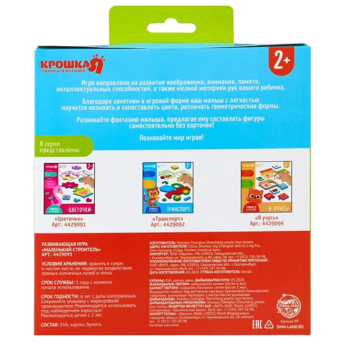 Детская развивающая игра Крошка Я «Маленький строитель», изучение форм/цветов, EVA — Характеристики