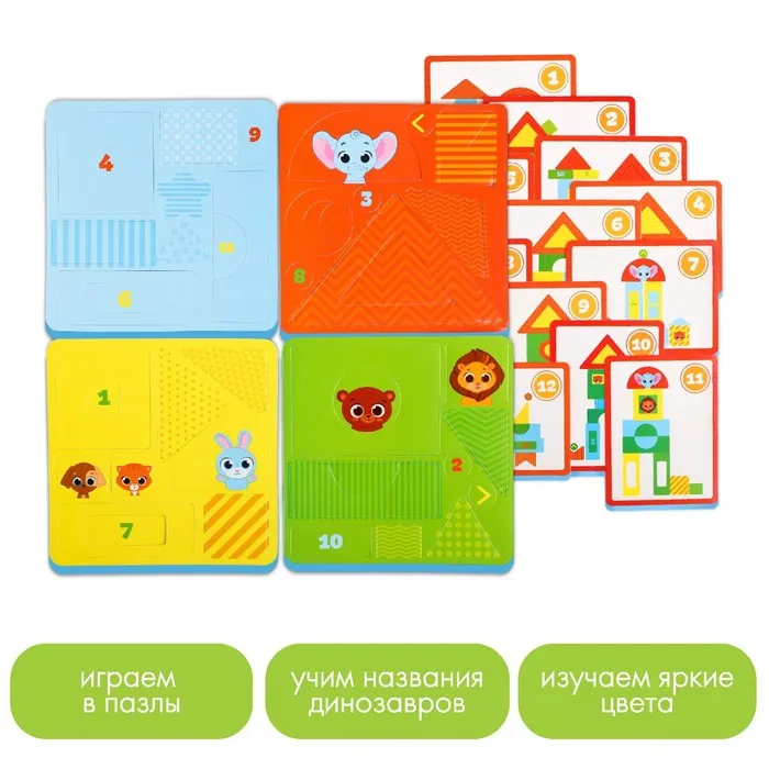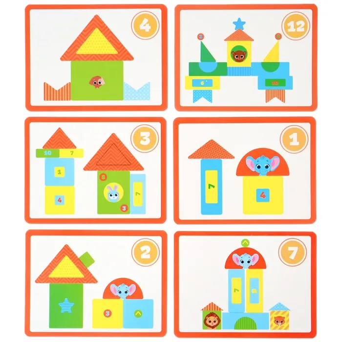 Игра направлена на развитие памяти , воображения , памяти и интеллектуальных особенностей, а так же мелкой моторики рук вашего ребенка. Благодаря занятиям в игровой форме ваш малыш с легкостью научится называть и сопоставлять цвета, различать геометрические формы. Развивает фантазию малыша, предлагая ему составлять фигуры самостоятельно, без карточек.