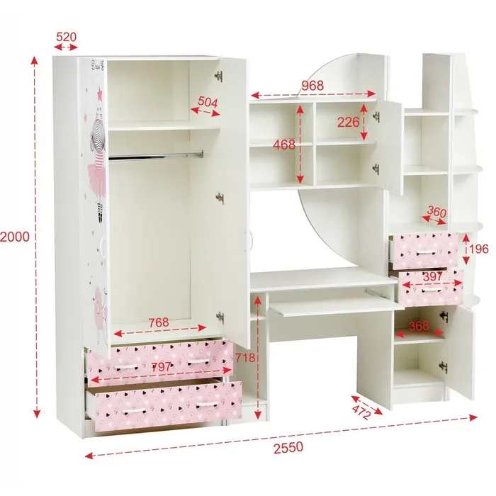 Детская стенка «Мальвина», 2550×2000×520, фотопечать, цвет белый — Характеристики
