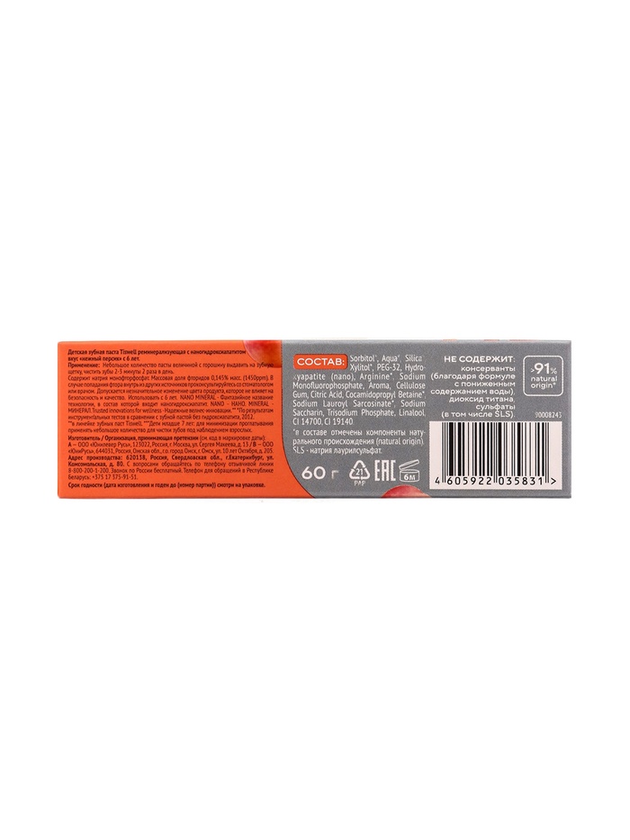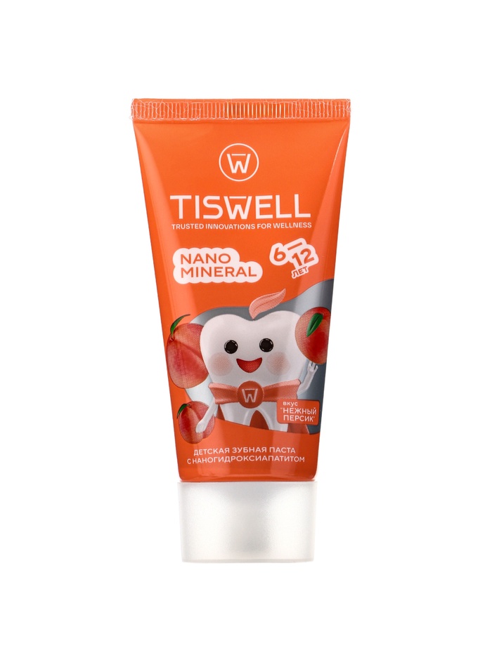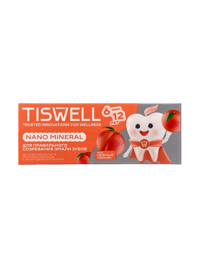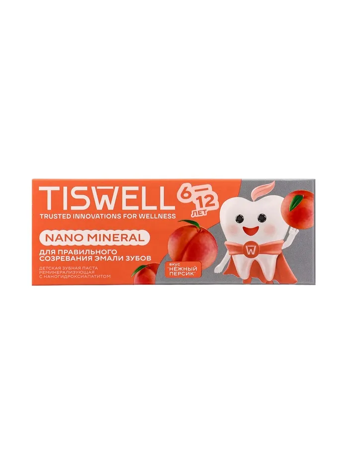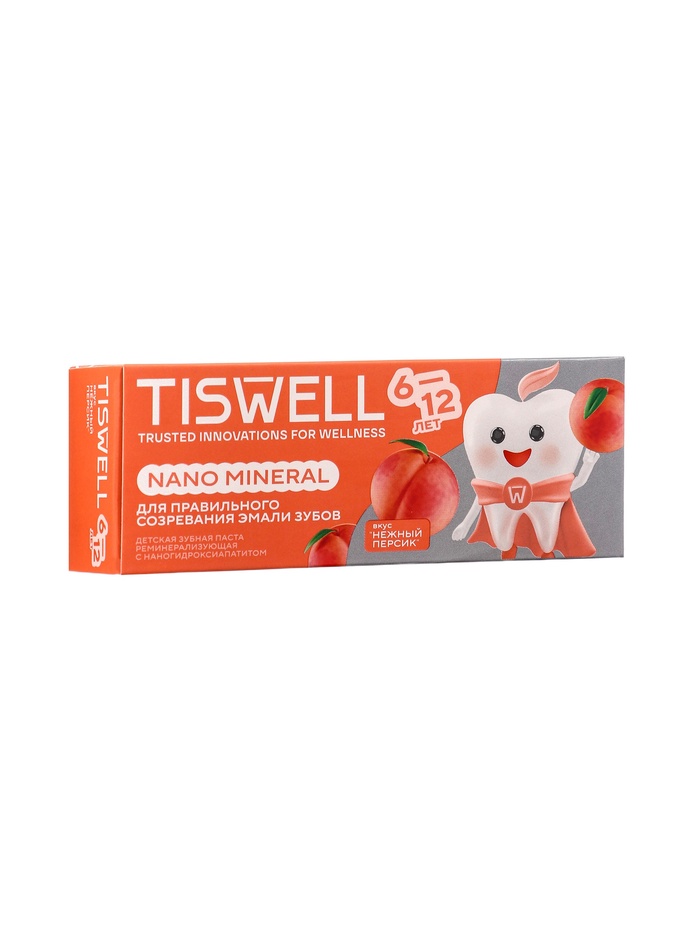Зубная паста детская реминерализирующая с наногидроксиапатитом «Нежный персик», 60 г — специально разработана для детей от 6 до 12 лет с учётом особенностей растущей зубной эмали. Обогащённая наногидроксиапатитом, паста укрепляет эмаль, проникая в микротрещины и защищая зубы от кариеса, при этом мягко очищает зубы и дёсны, не вызывая раздражения слизистой.