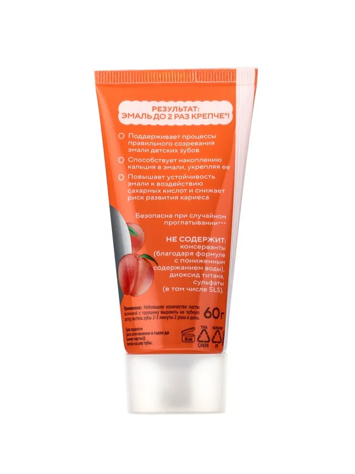 Сладкий и приятный аромат нежного персика превращает ежедневную чистку зубов в увлекательный и радостный ритуал, помогая детям формировать правильные привычки ухода за полостью рта с раннего возраста. Паста бережно заботится о здоровье зубов и дёсен, поддерживая их крепость и естественную чистоту.