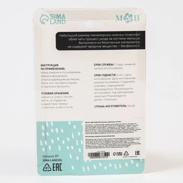 Детские маникюрные ножницы, бирюзовые, белые — Характеристики
