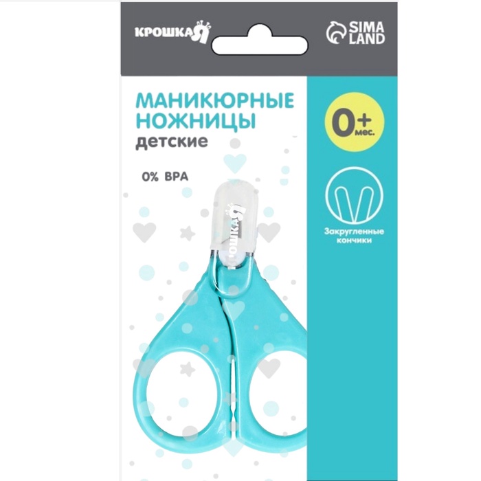 Детские маникюрные ножницы Крошка Я, с защитным колпачком, ВИД 1, бирюзовый — Характеристики