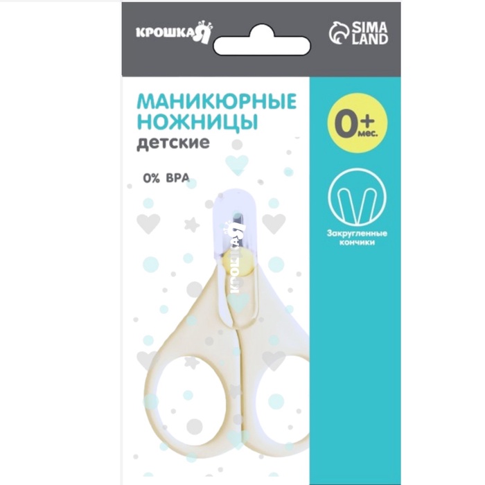 Детские маникюрные ножницы Крошка Я, с защитным колпачком, ВИД 1, молочный — Характеристики
