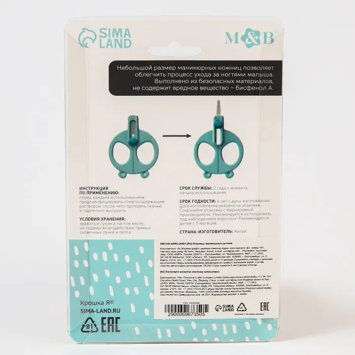Детские ножницы абсолютно безопасны для маленьких пальчиков: с ними вам будет очень просто ухаживать за ногтями вашего ребенка, т.к. они режут очень бережно и аккуратно
