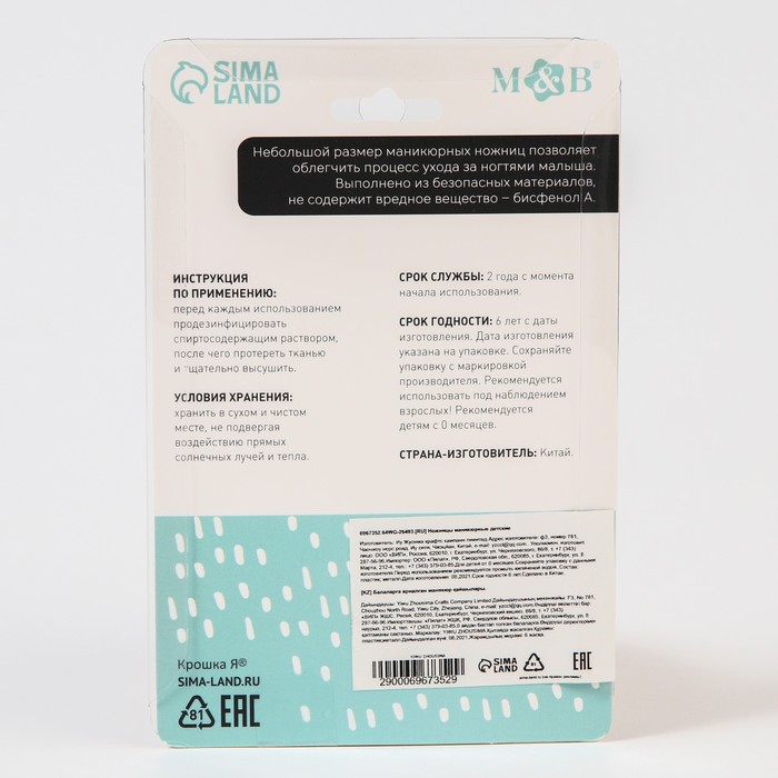 Детские маникюрные ножницы M&B, розовый/белый — Характеристики