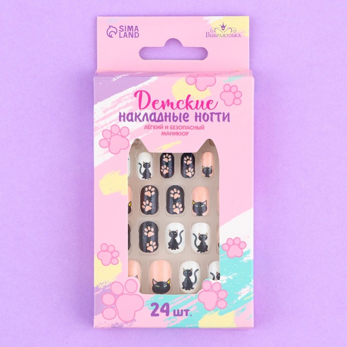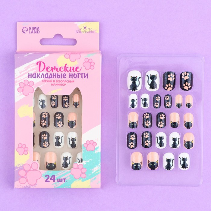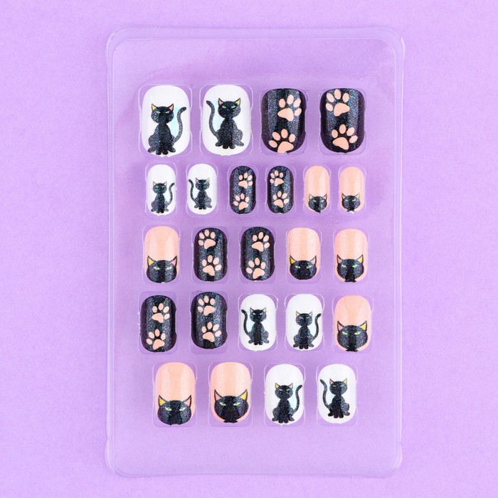 Детские накладные ногти «Черный котик», 24 шт. — Характеристики