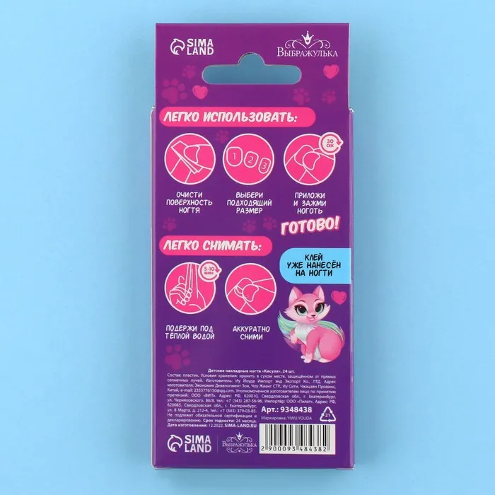 Детские накладные ногти «Кисуля», 24 шт — Характеристики