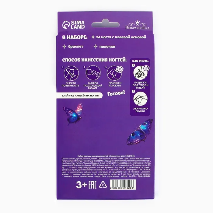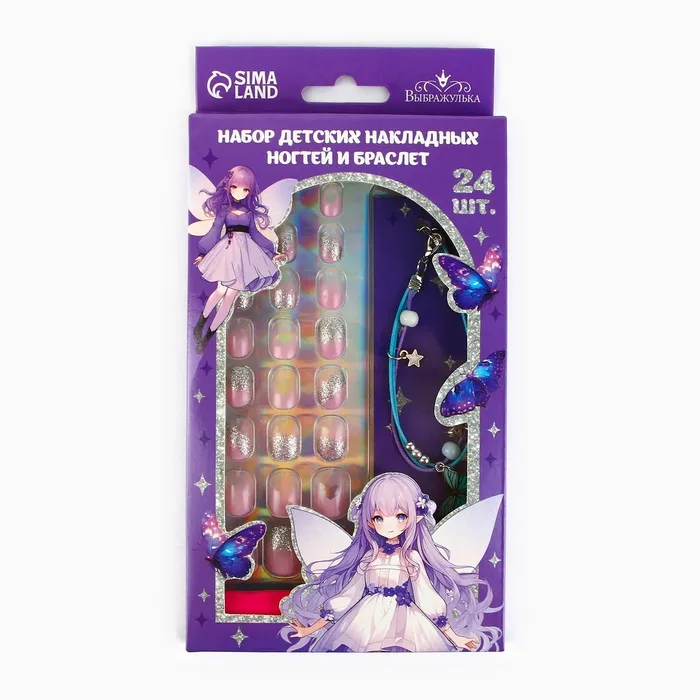 Детские накладные ногти «Лесная Фея», 24 шт, набор с браслетом — Характеристики