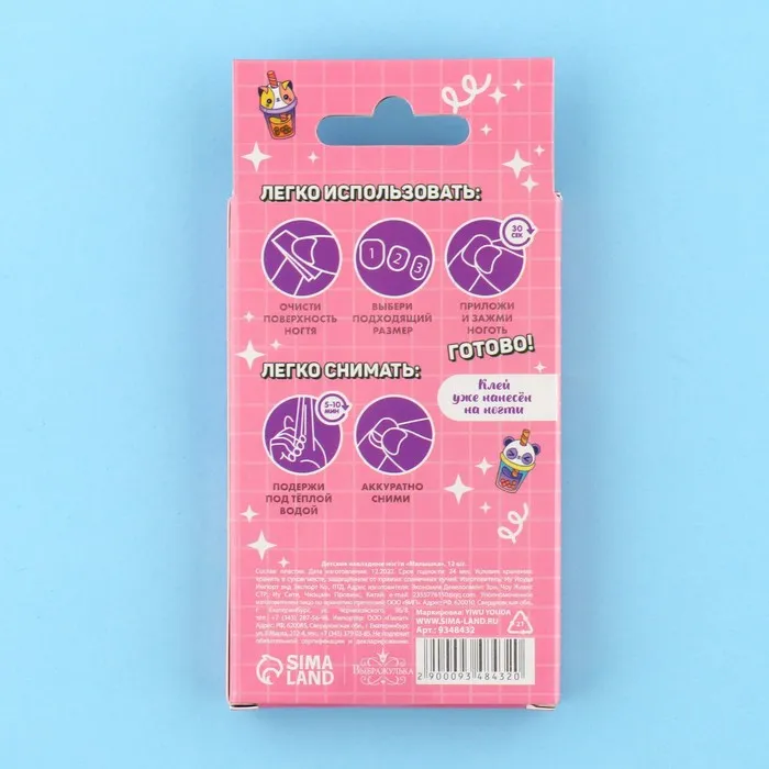 Детские накладные ногти придуманы для самых ярких и стильных девчонок! Клей уже нанесён на ногти.