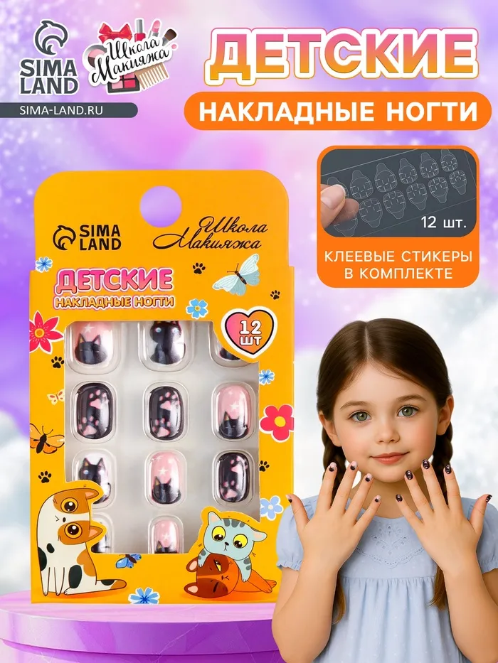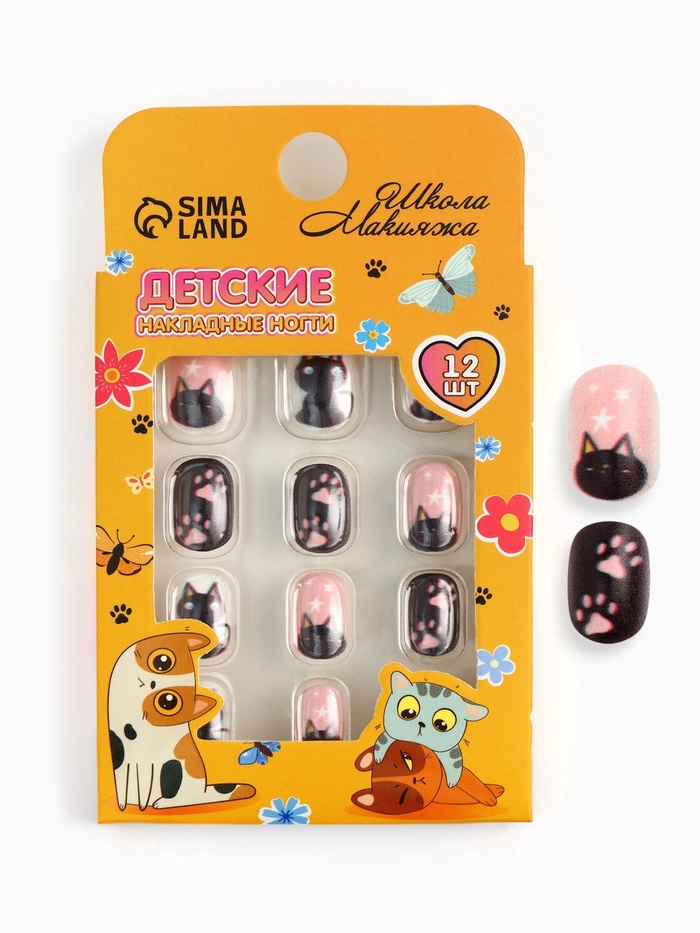 Детские накладные ногти "Meow", 12 шт