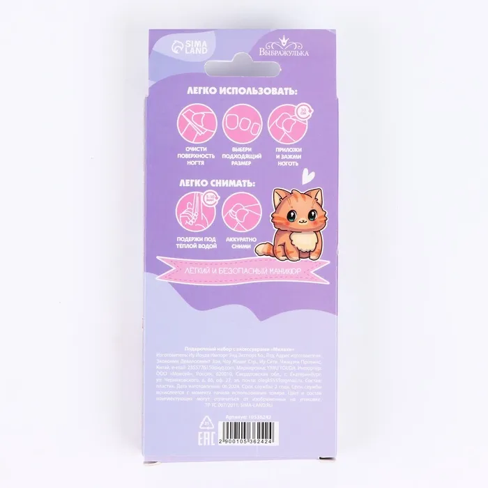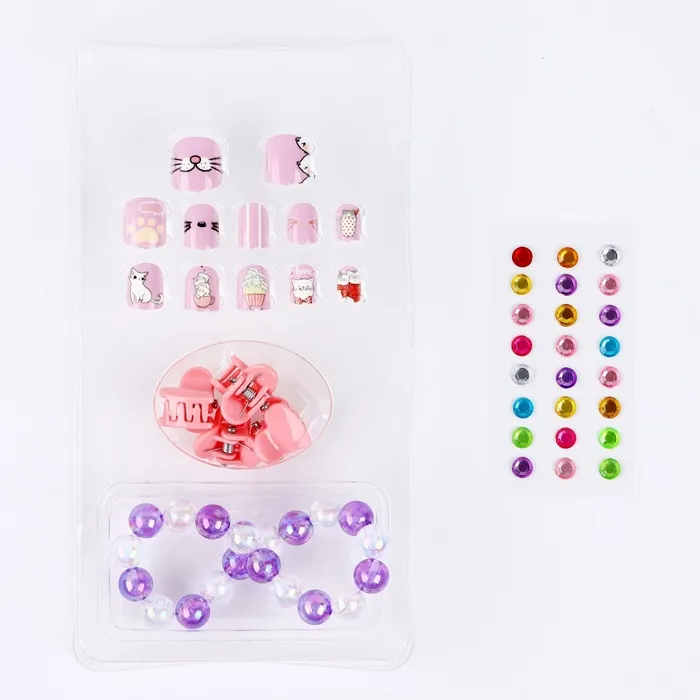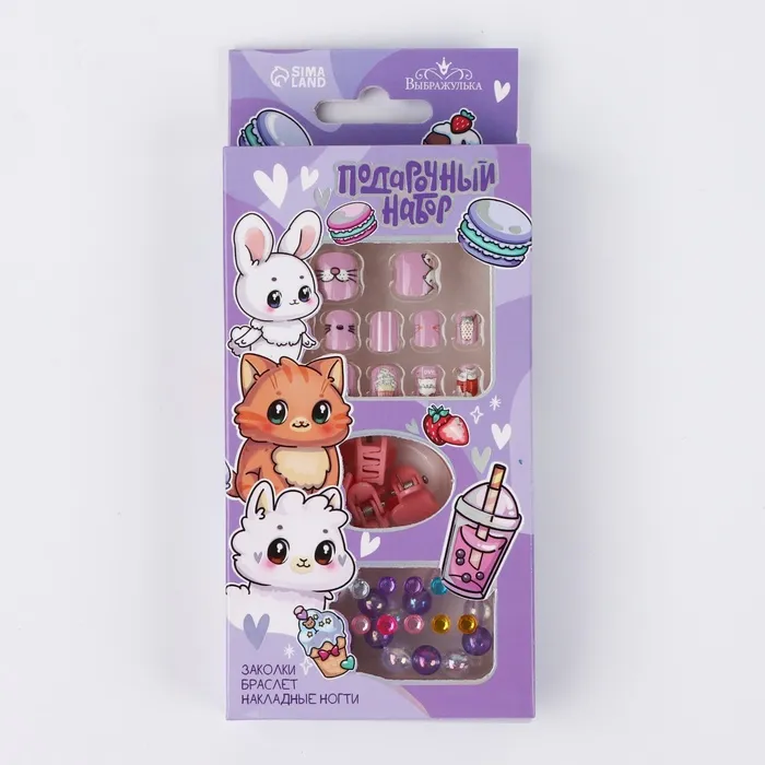 Детские накладные ногти «Милахи», 12 шт, набор с браслетом и заколками — Характеристики