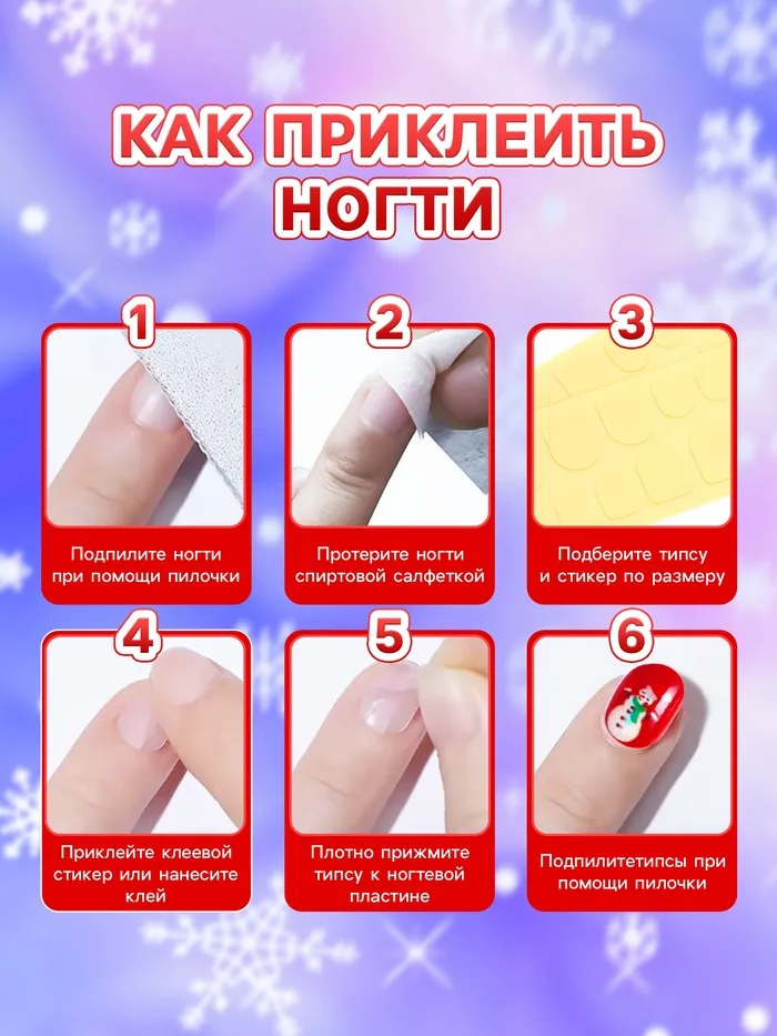 Приложите накладной ноготок сверху своего, плотно прижмите и подержите несколько секунд.