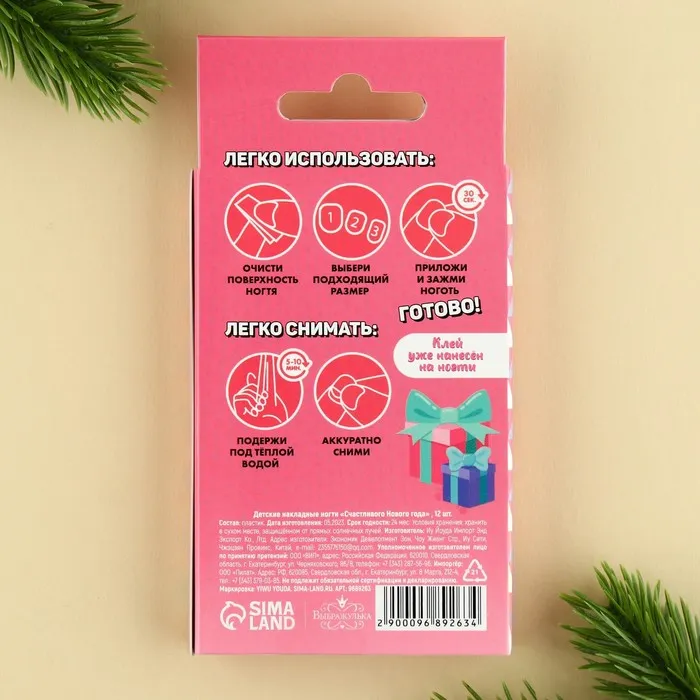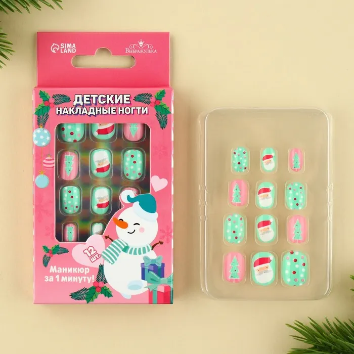 Детские накладные ногти на новый год «Счастливый Новый Год», 12 шт — Характеристики