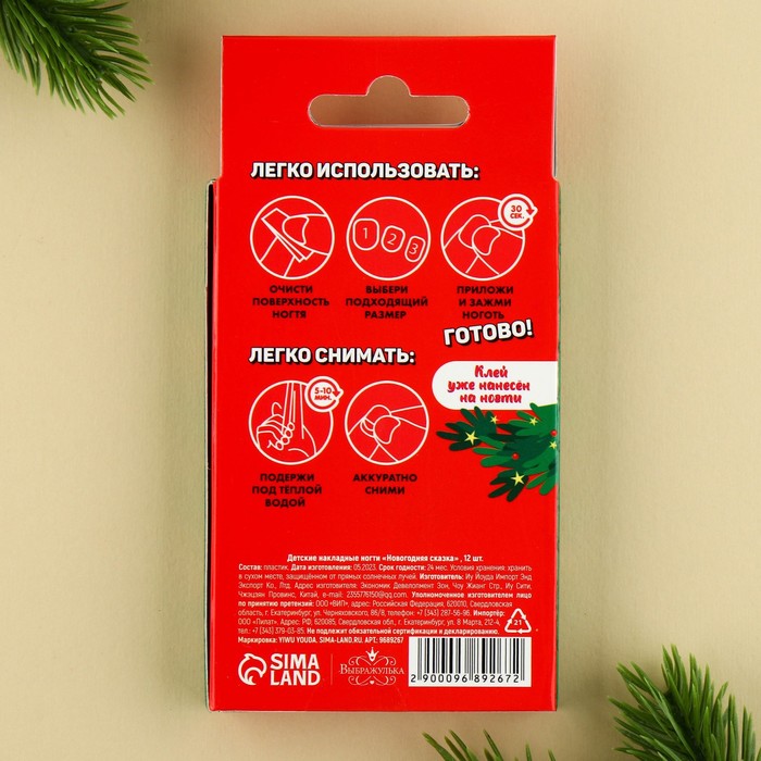 Детские накладные ногти на новый год «Сказка», 12 шт. — Характеристики