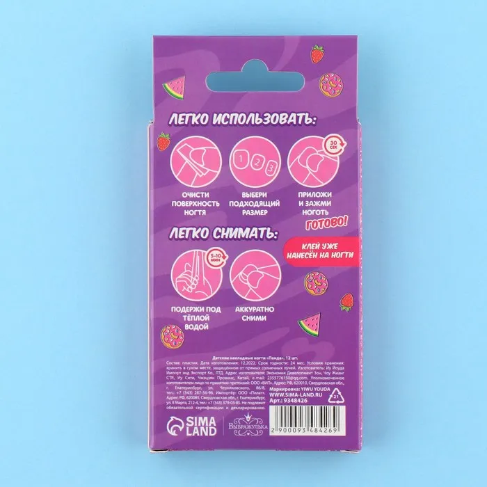 Детские накладные ногти «Панда», 12 шт — Характеристики