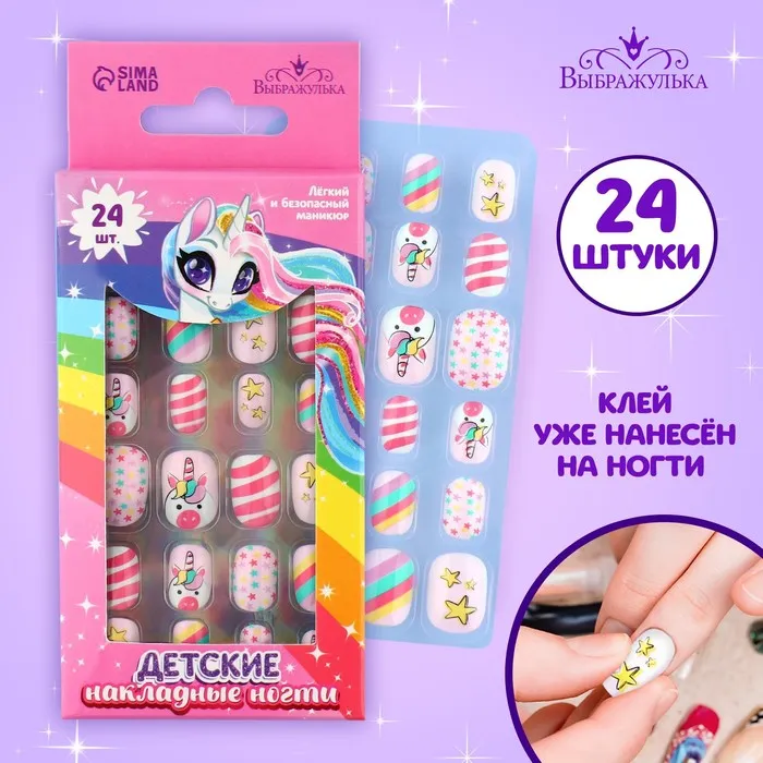 Детские накладные ногти придуманы для самых ярких и стильных девчонок! Клей уже нанесён на ногти.