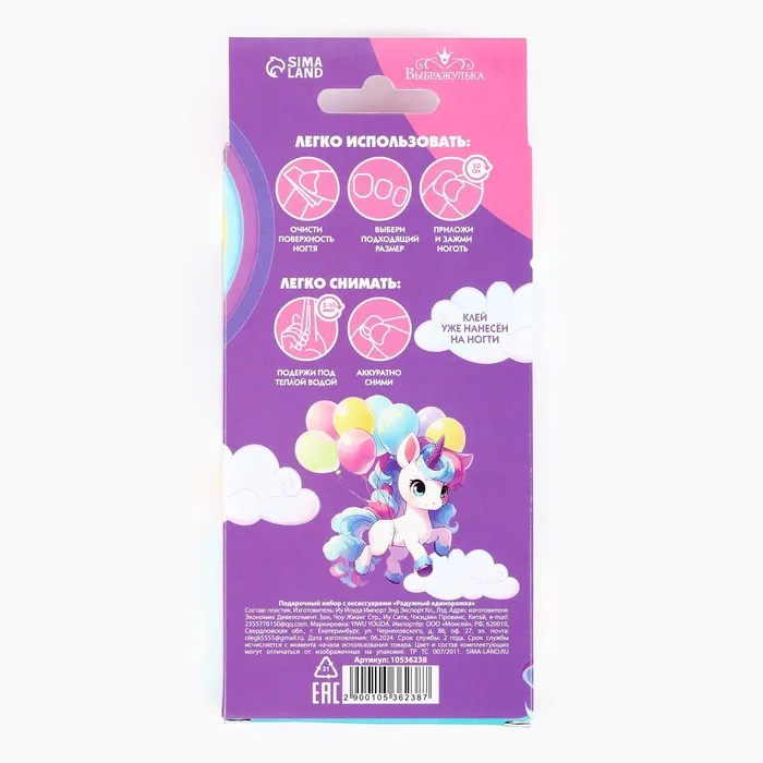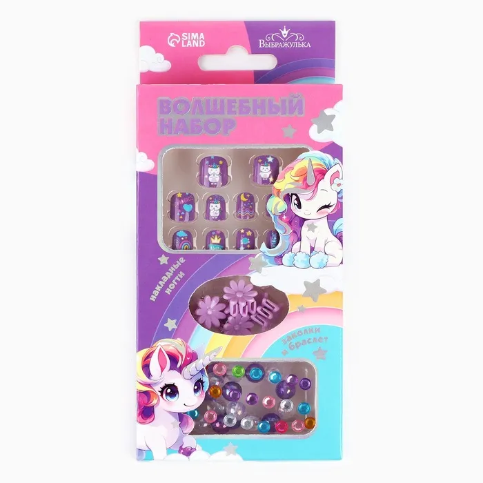 Детские накладные ногти «Радужный Единорожка», 12 шт, набор с браслетом и заколками — Характеристики