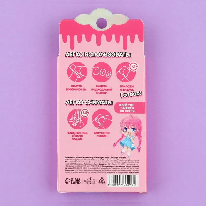 Детские накладные ногти «Сладкий десерт», 12 шт — Характеристики