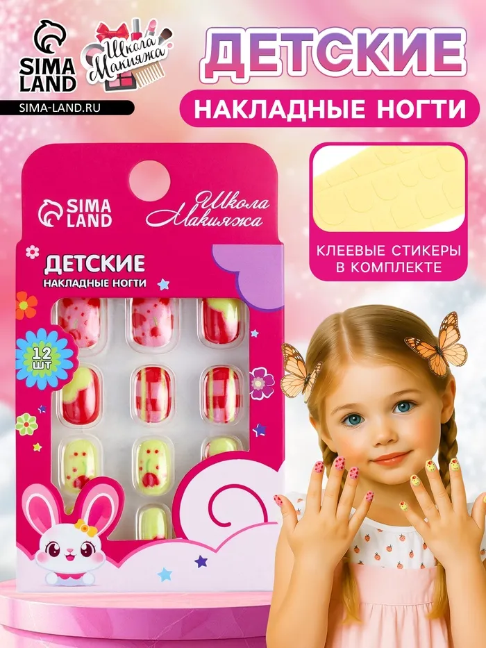 Детские накладные ногти придуманы для самых ярких и стильных девчонок! Клей уже нанесён на ногти.