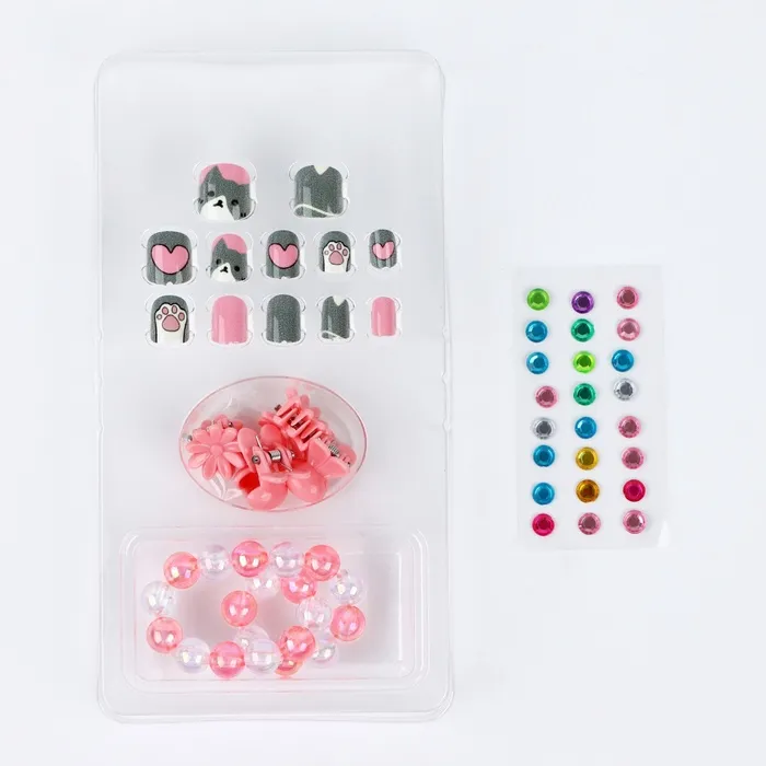Детские накладные ногти «Сладкий котик», 12 шт, набор с браслетом и заколками — Характеристики