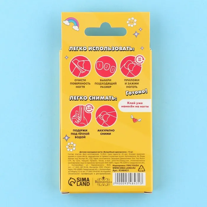 Детские накладные ногти «Волшебный единорожка», 12 шт — Характеристики