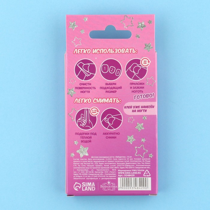 Детские накладные ногти «Звездочка», 12 шт. — Характеристики