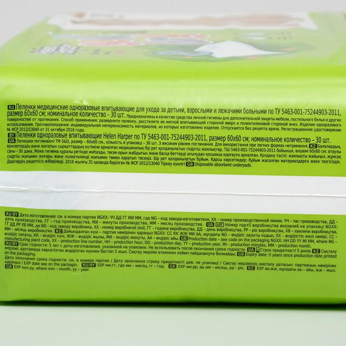 Детские пелёнки Helen Harper Soft&Dry, размер 60х60 30 шт. — Характеристики