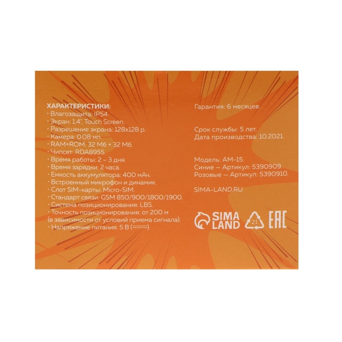 Детские смарт-часы Windigo AM-15, 1.44", 128x128, SIM, 2G, LBS, камера 0.08 Мп, розовые — Характеристики
