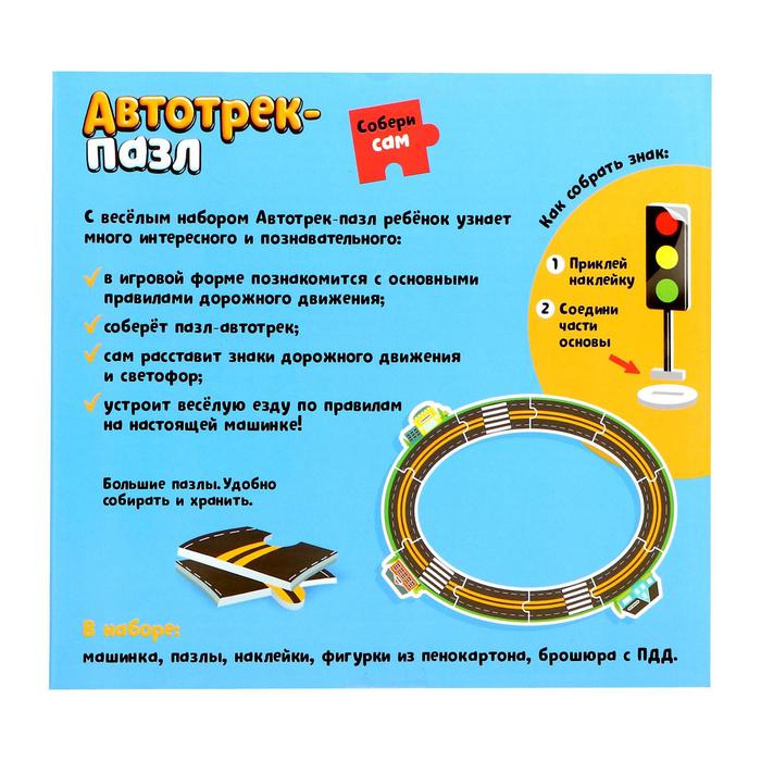 Набор для мальчиков «Автотрек-пазл» поможет ребёнку в игровой форме познакомиться с правилами дорожного движения, а также станет отличной развивающей игрушкой.