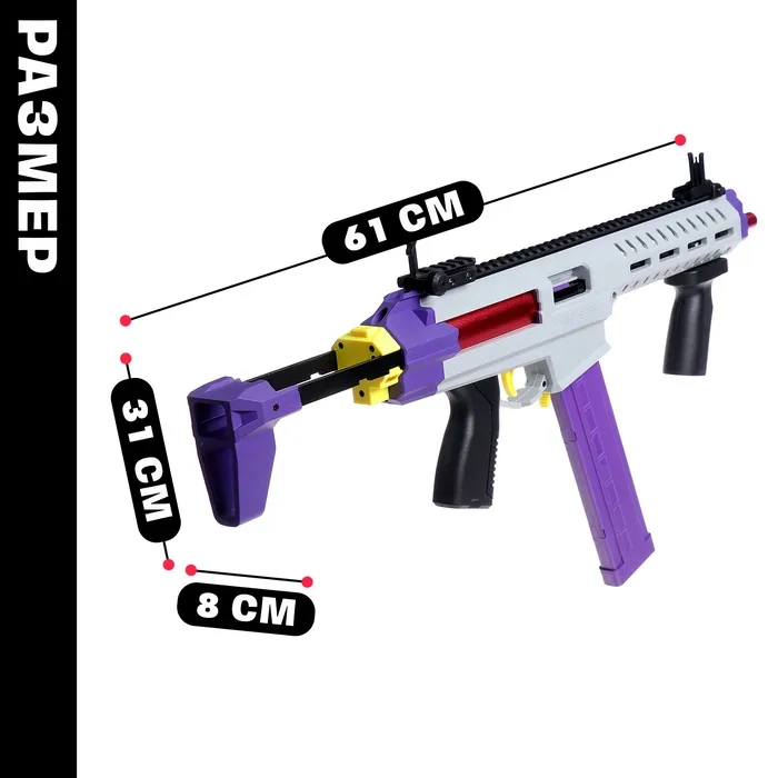 - Прочный корпус с металлическими вставками. Прочные и надежные материалы делают оружие долговечным и устойчивым к интенсивным играм.