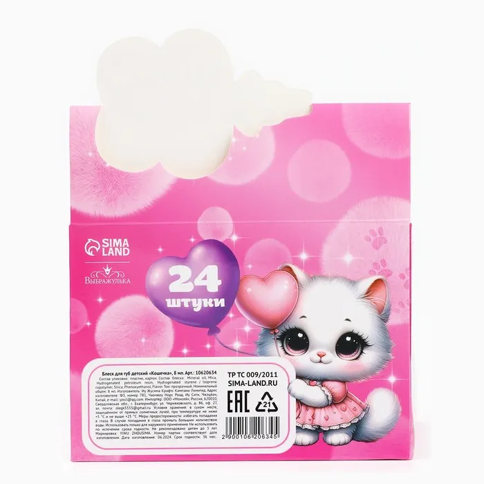 Детский блеск для губ «Кошечка», 8 мл, МИКС — Характеристики