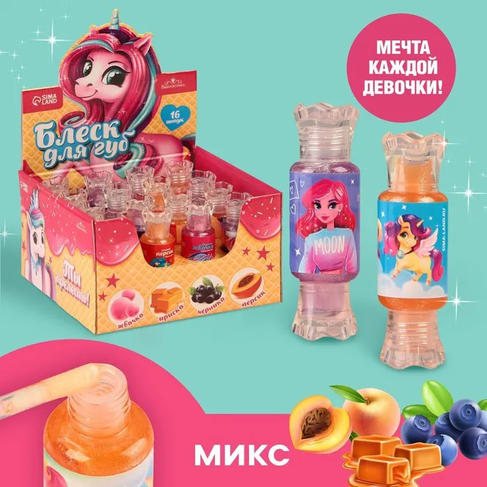 Блеск в оригинальной упаковке станет подарком для девочки на день рождения, Новый год или Восьмое марта.