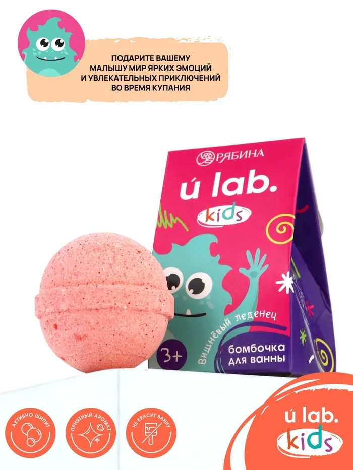 Детский бурлящий шар «Монстрики», аромат вишнёвый леденец 40 г, URAL LAB — Характеристики