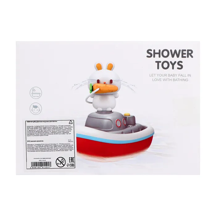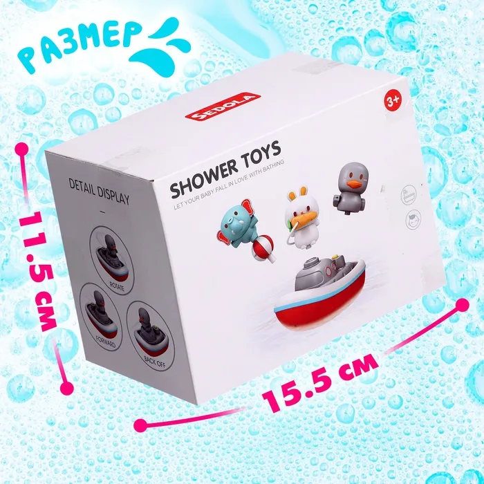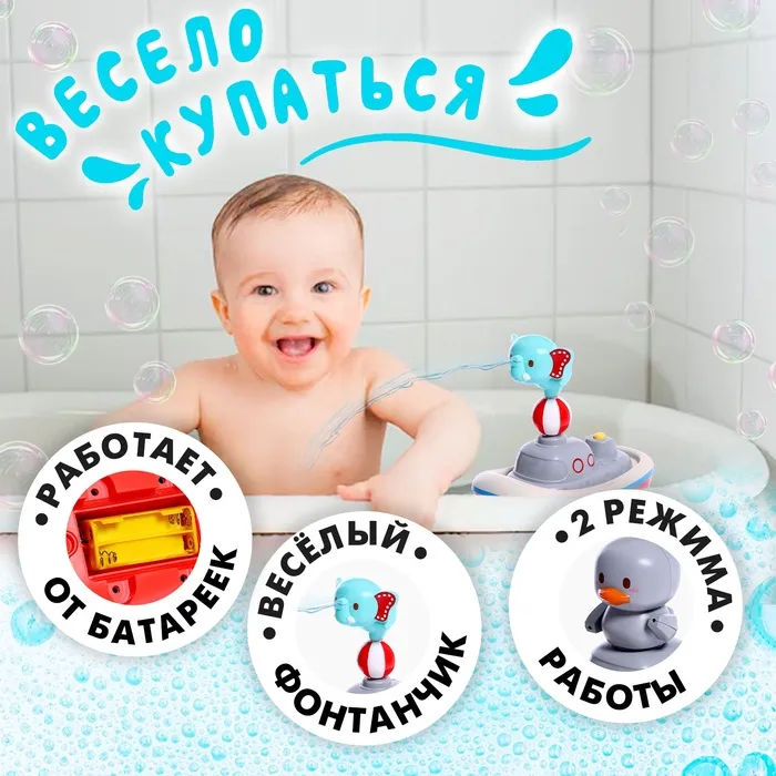 Детский фонтанчик для ванны «Зверята на кораблике», 3 насадки, работает от батареек — Характеристики