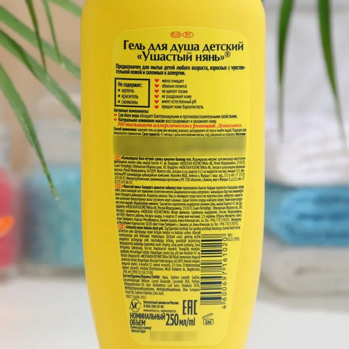Детский гель для душа Ушастый нянь, с алоэ, 250 мл — Характеристики