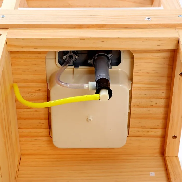 - Из крана бежит вода. Её нужно предварительно залить в резервуар под мойкой.