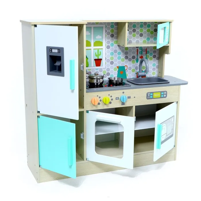Детская игровая кухня в голубых тонах — это многофункциональный игровой модуль, который станет отличным подарком для маленьких хозяек. С её помощью ребёнок сможет почувствовать себя настоящим поваром, открыть свой ресторан или устроить семейный ужин для кукол. Игрушка подходит для сюжетных игр и способствует развитию творческого мышления.