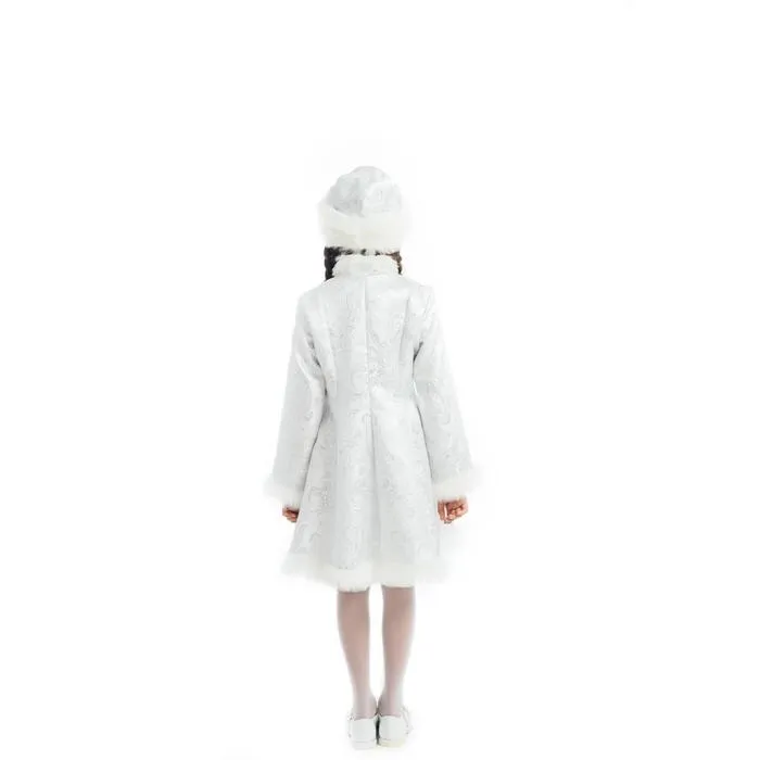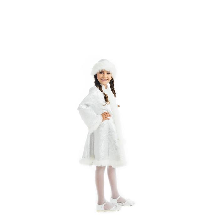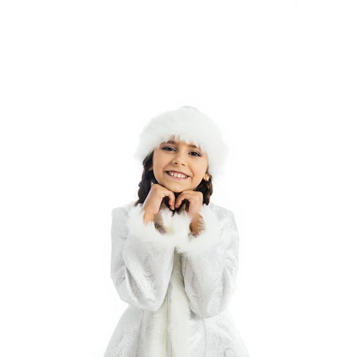 Детский карнавальный костюм «Снегурочка», парча белая, шуба, шапка, р. 34, рост 134 см — Характеристики