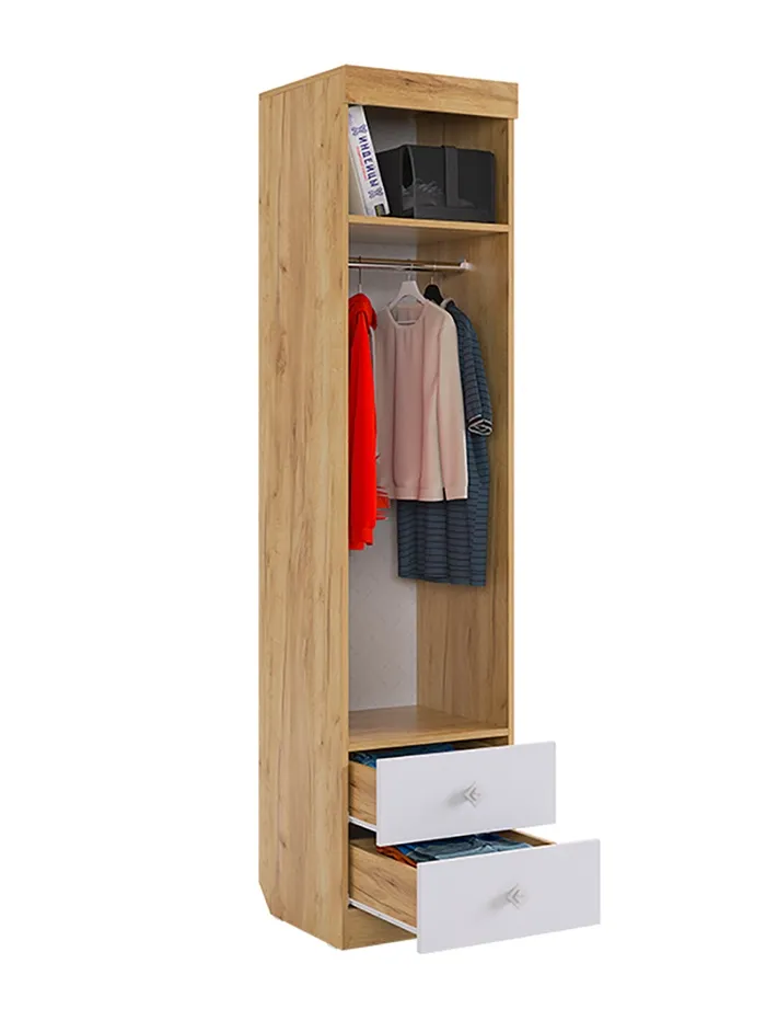 Подходит для формирования уютного пространства вашего ребенка. Пространство организовано рационально: просторная штанга позволяет аккуратно разместить одежду, два вместительных выдвижных ящика помогают хранить мелкие вещи и игрушки.