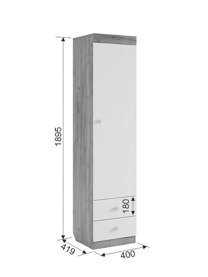 Детский комбинированный шкаф «Форсаж», 2 ящика, 400×420×1900 мм, цвет дуб крафт золотой/белый — Характеристики