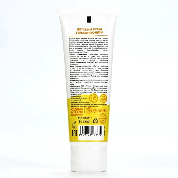 Детский крем увлажняющий, 75 мл, с экстрактом ромашки, 0+, Беби Буль — Характеристики